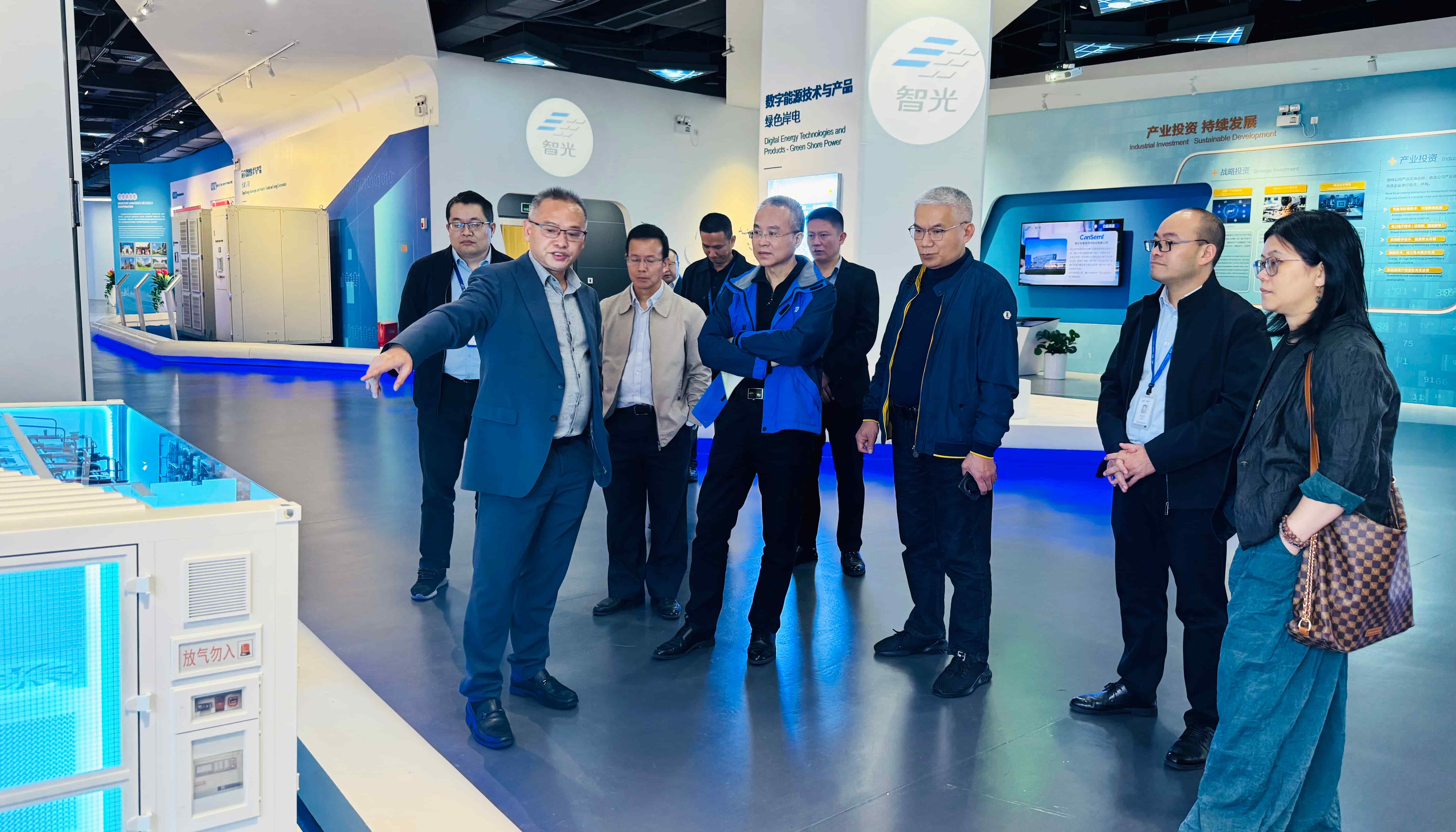 隨后,嘉賓一行前往智光綜合能源產(chǎn)業(yè)園,參觀園區(qū)展廳,詳細(xì)了解智光電氣在綜合能源服務(wù)、儲能系統(tǒng)集成和電力數(shù)字化等領(lǐng)域的技術(shù)成果、項(xiàng)目案例及產(chǎn)業(yè)布局,進(jìn)一步加深了對智光電氣在新型電力系統(tǒng)建設(shè)中的技術(shù)積淀、創(chuàng)新能力與實(shí)踐經(jīng)驗(yàn)的全面認(rèn)知。