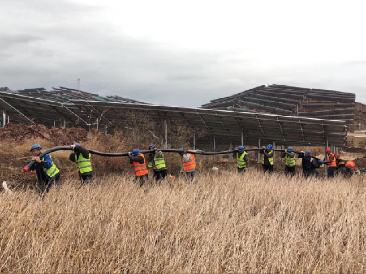 該項目工程量大,除了廣闊的光伏區外,還包括一座220千伏升壓站和1.8公里的外送線路兩項重大配套工程,并且有建設周期短的要求。智光用電投資接到中標通知書后,急業主所急,迅速動員、嚴密部署,成立了以智光用電投資主要領導親自掛帥的項目協調小組和現場指揮部等組織機構,充分調動公司內外部力量,集全員之力,分工合作,全面打通了從土地租賃、青苗賠償,設計、采購、監造,現場安裝、質安管理和外部協調等各項工作環節。